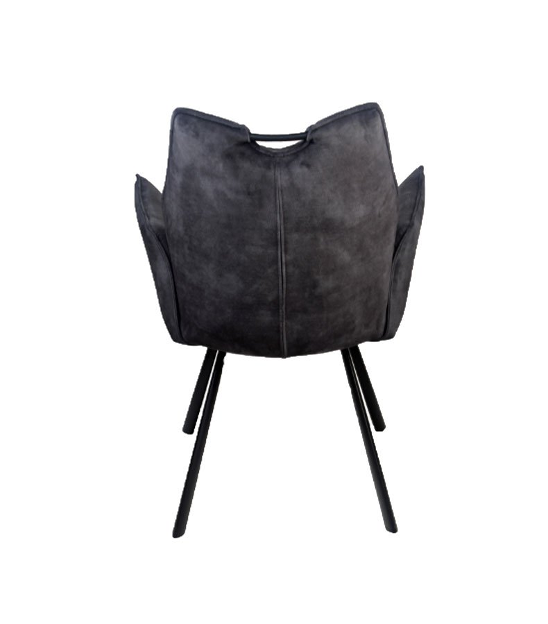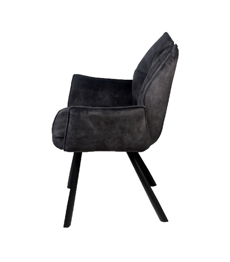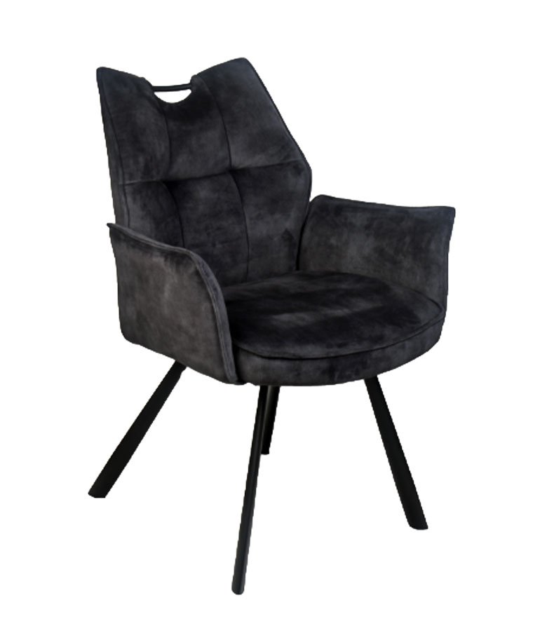 Merel is een comfortabele stoel met metalen poten en een handige handgreep voor eenvoudig verplaatsen van de stoel.