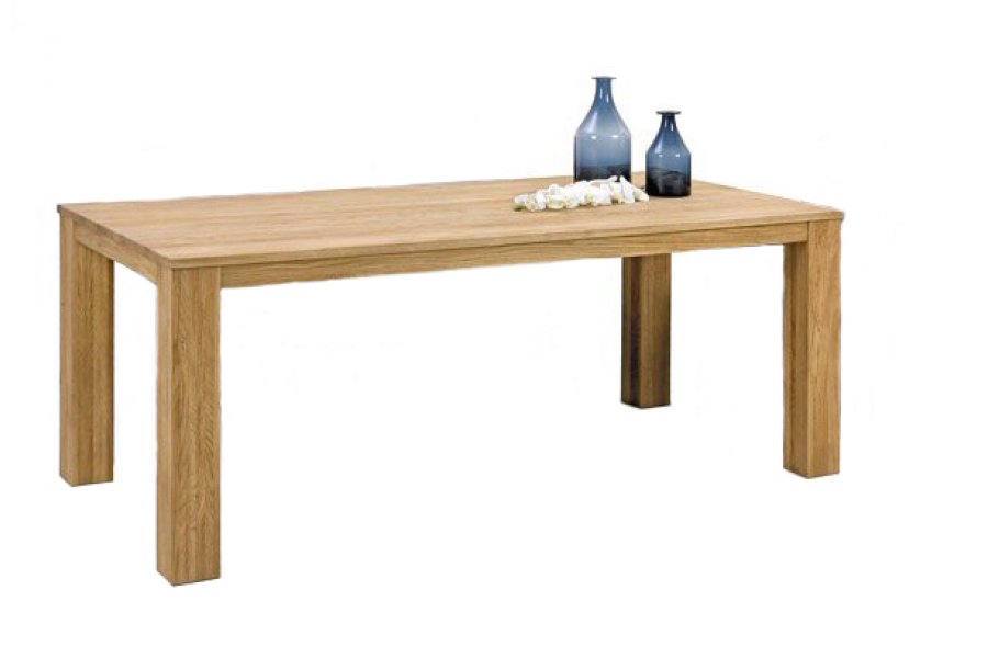 Eetkamertafel Koos is een robuust massief eikenhouten tafel met een strakke belijning.
