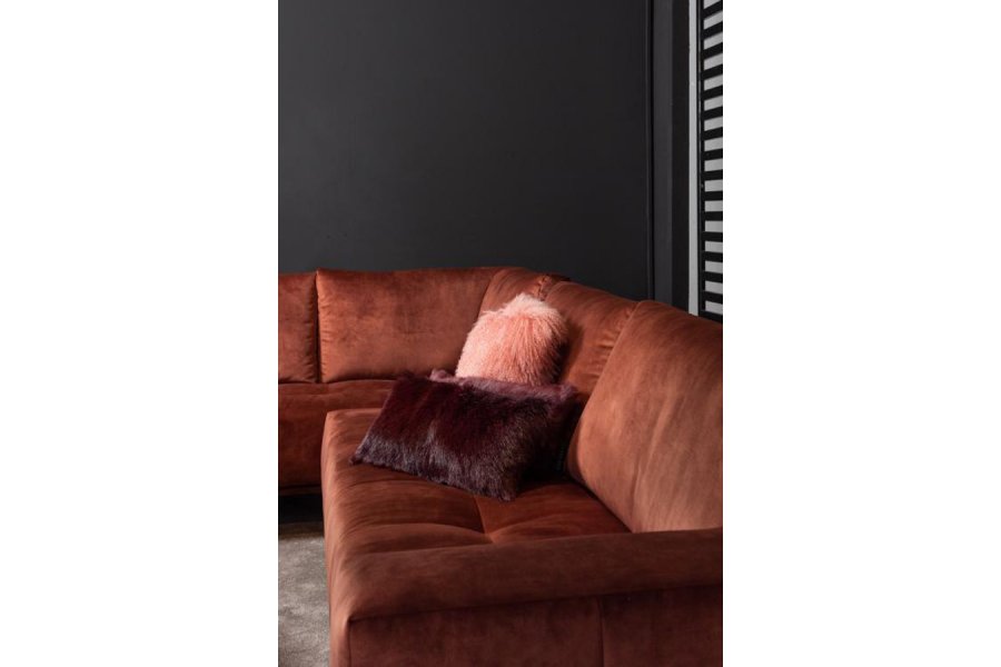 De bank is voorzien van vaste zitkussens en losse rugkussens.