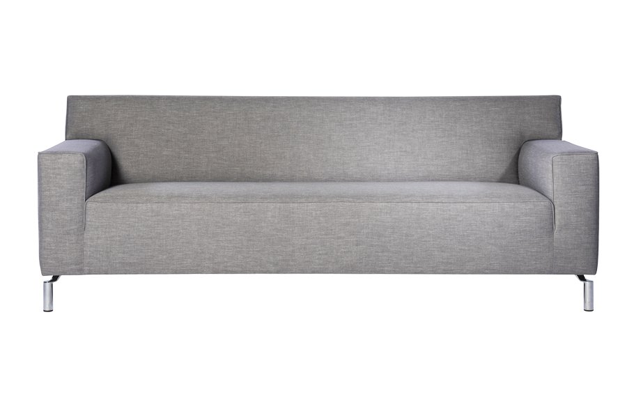 De bank staat hoog op zijn poten wat hem een open uitstraling geeft.