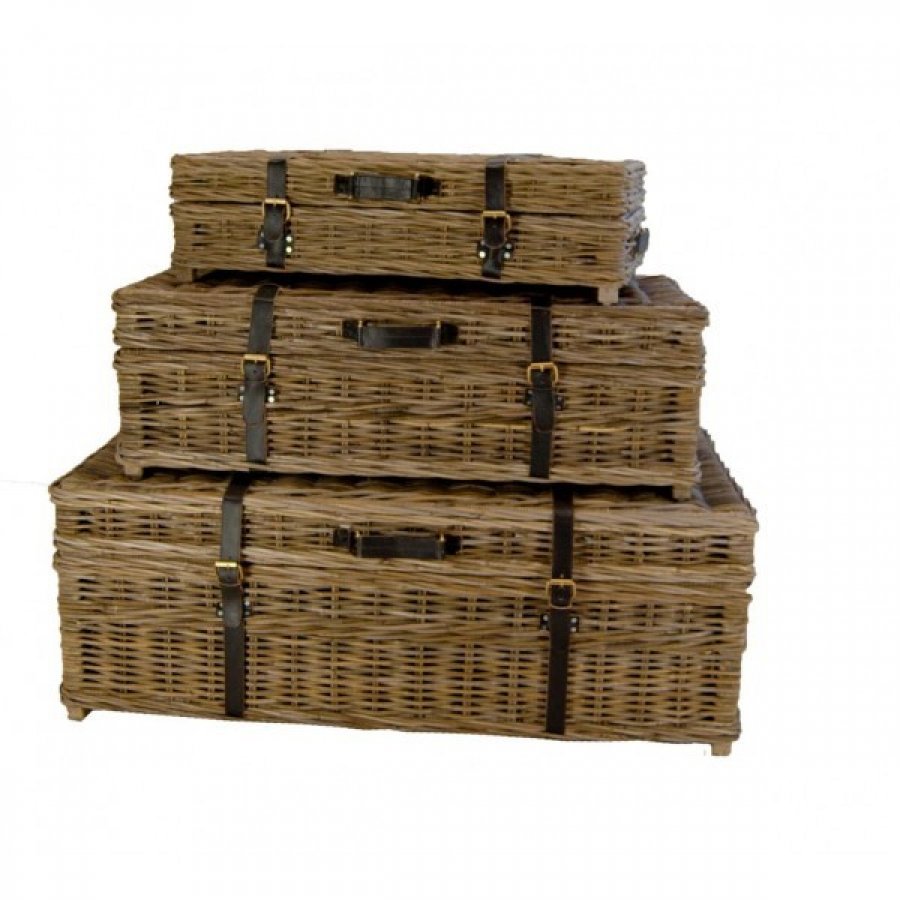 Multifunctionele koffer welke zowel als speelgoedkoffer als salontafel gebruikt kan worden. Met het grijze vlechtwerk en de lederen accenten een echte sfeermaker in huis.