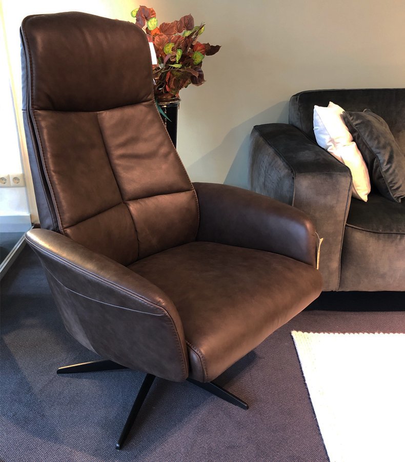 Deze fauteuil is leverbaar in een mooie kwaliteit bruin leder.