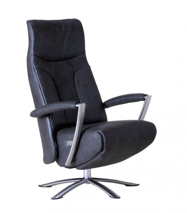 Relaxfauteuil Taco is uitgevoerd in leder gecombineerd met een RVS voet.