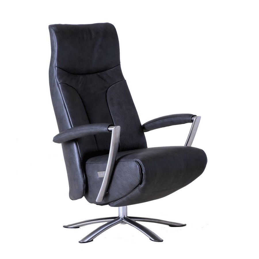 Relaxfauteuil Taco is uitgevoerd in leder gecombineerd met een RVS voet.