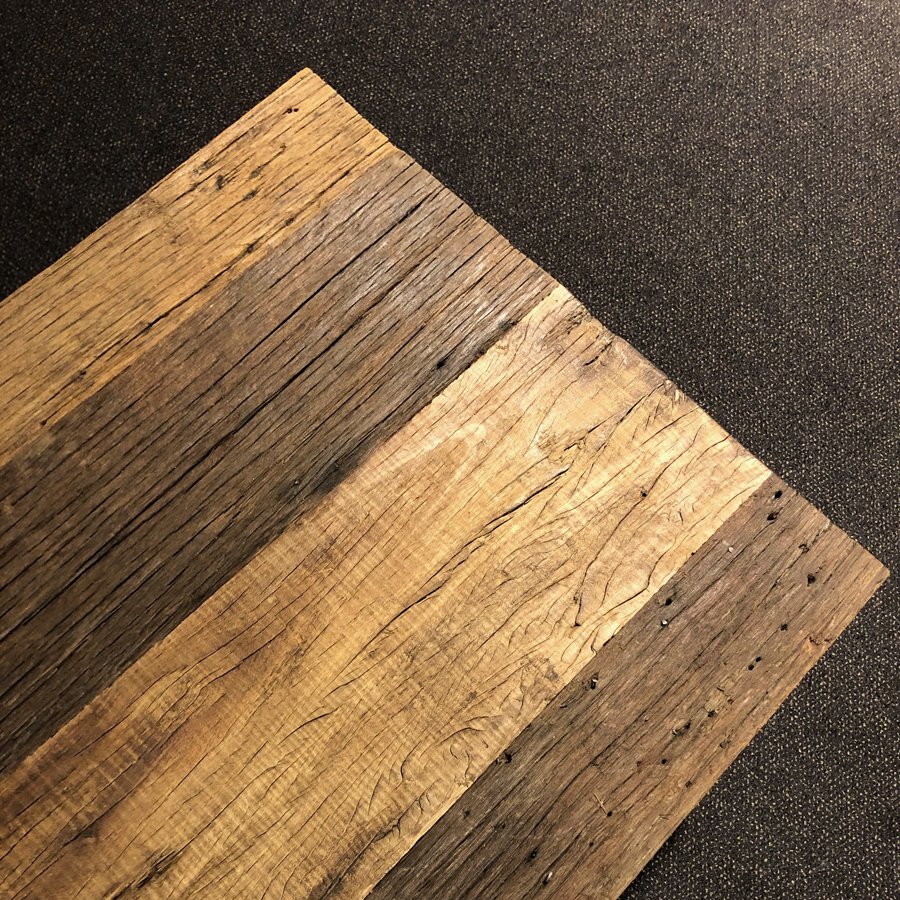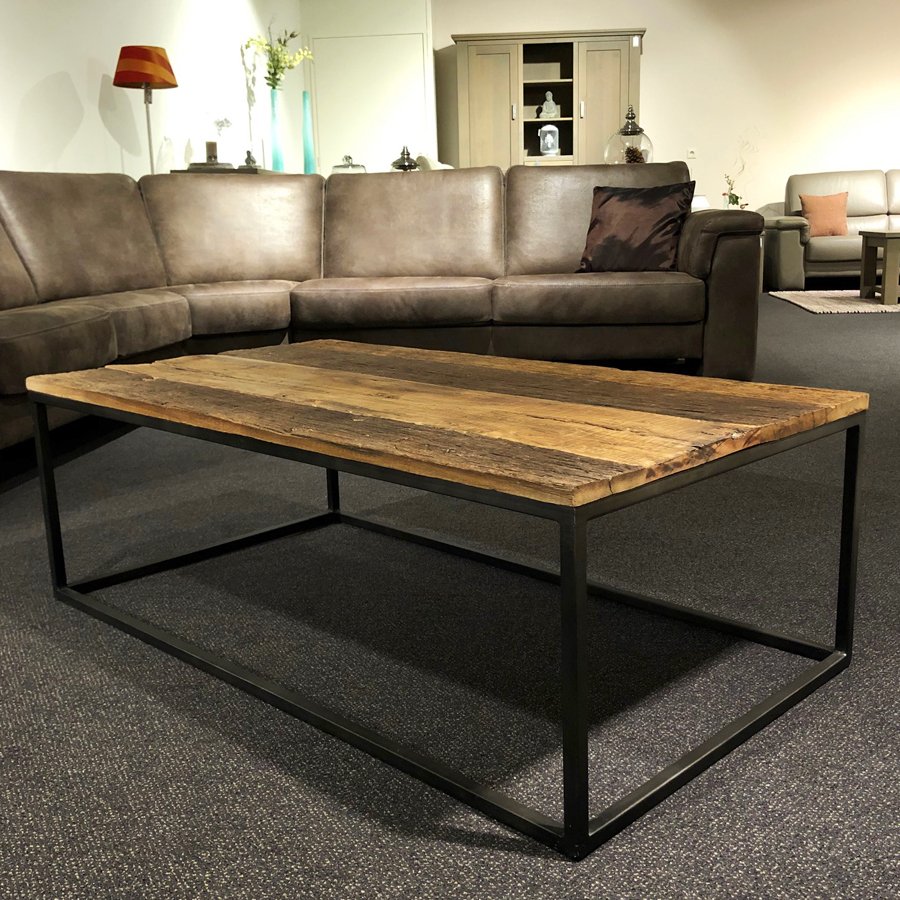 Jorcas is een salontafel van gerecycled hout met een industriëel onderstel.